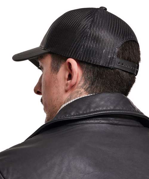 Leather meets mesh – and born is the leather trucker cap! Prepare yourself for a very special accessory that boosts streetwear style and upgrades your wardrobe with originality. The front features a soft leather look and is underlined by a pre-bent visor with decorative seams. The back is made of traditional trucker cap mesh. Naturally, a perfect fit is guaranteed by an easy to use closure on the back. Skilfully striking a pose can be so easy, so don’t be shy!