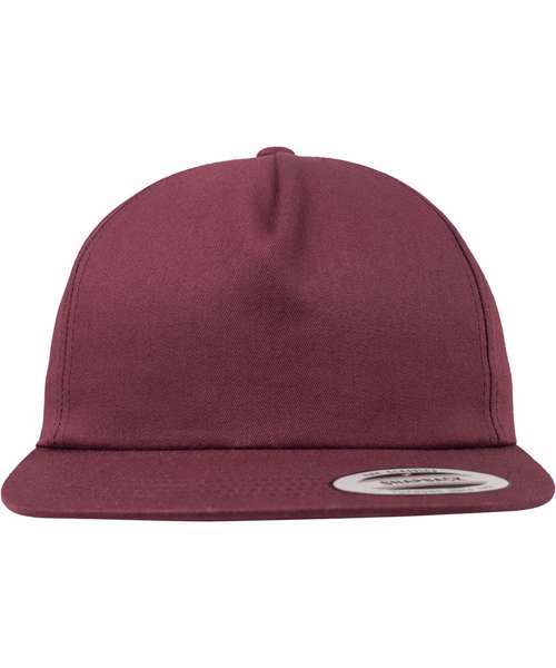 Unstructured 5-panel snapback. Classic snapback shape. Soft front without buckram. Extra-casual look.