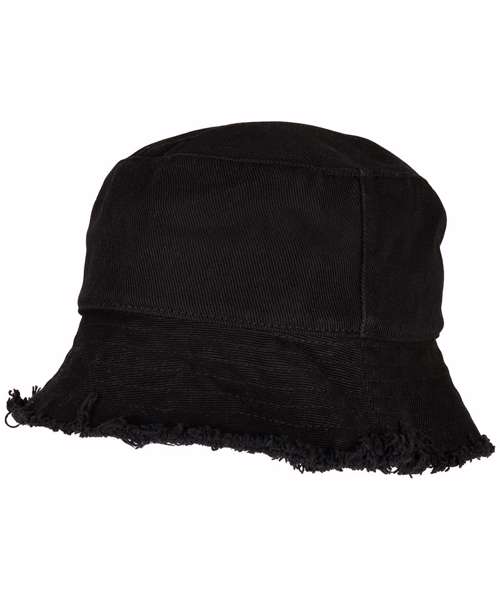 A classic bucket hat with a fashionable twist: the edge of its flat brim is casually frayed, plus, it is made without typical decorative seams. The hat is one-size-fits-all and made from robust yet comfortable cotton to provide optimum wearer comfort.