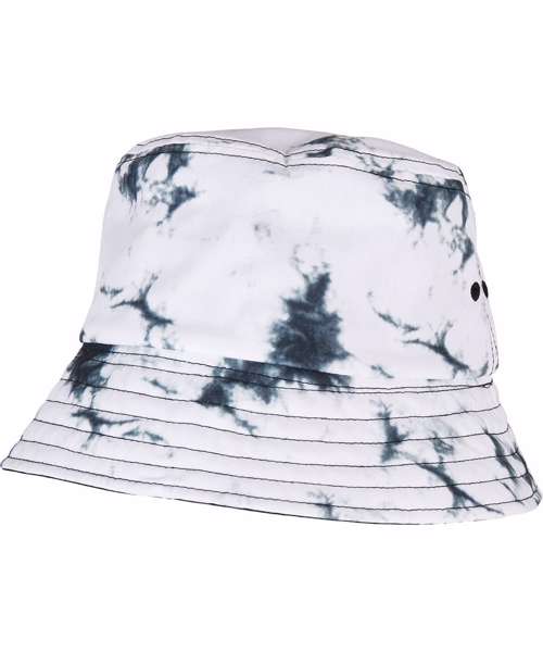 This bucket hat is reversible, designed in a two-tone batik pattern, with the other side in plain black. It features a flat brim with decorative seams and bordered eyelets and is made from sturdy polyester. One size fits all.
