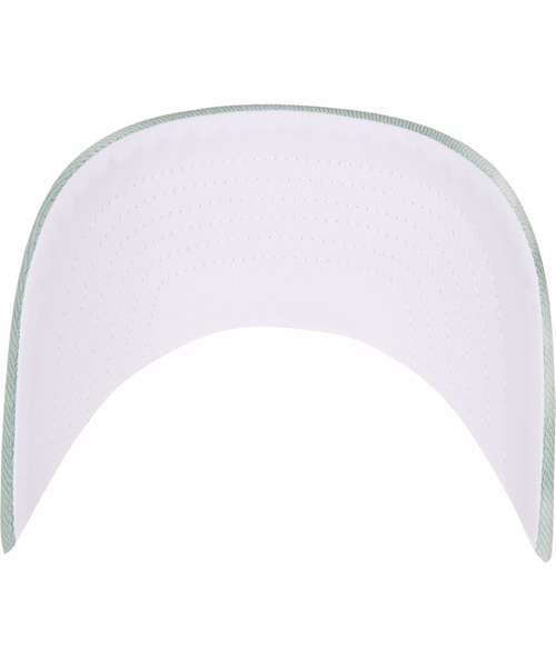This Flexfit cap offers an elaborate look – its curved visor with decorative seams, as well as the two front panels, are made with a cool tie dye look, while the back consists of transparent mesh. The cap is size-adjustable with its snapback closure on the back. Naturally, it’s a one-size-fits-all and is made from cotton and polyester mesh.