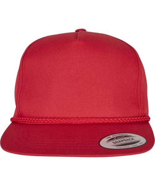 Snapback, flat visor, five-panel.